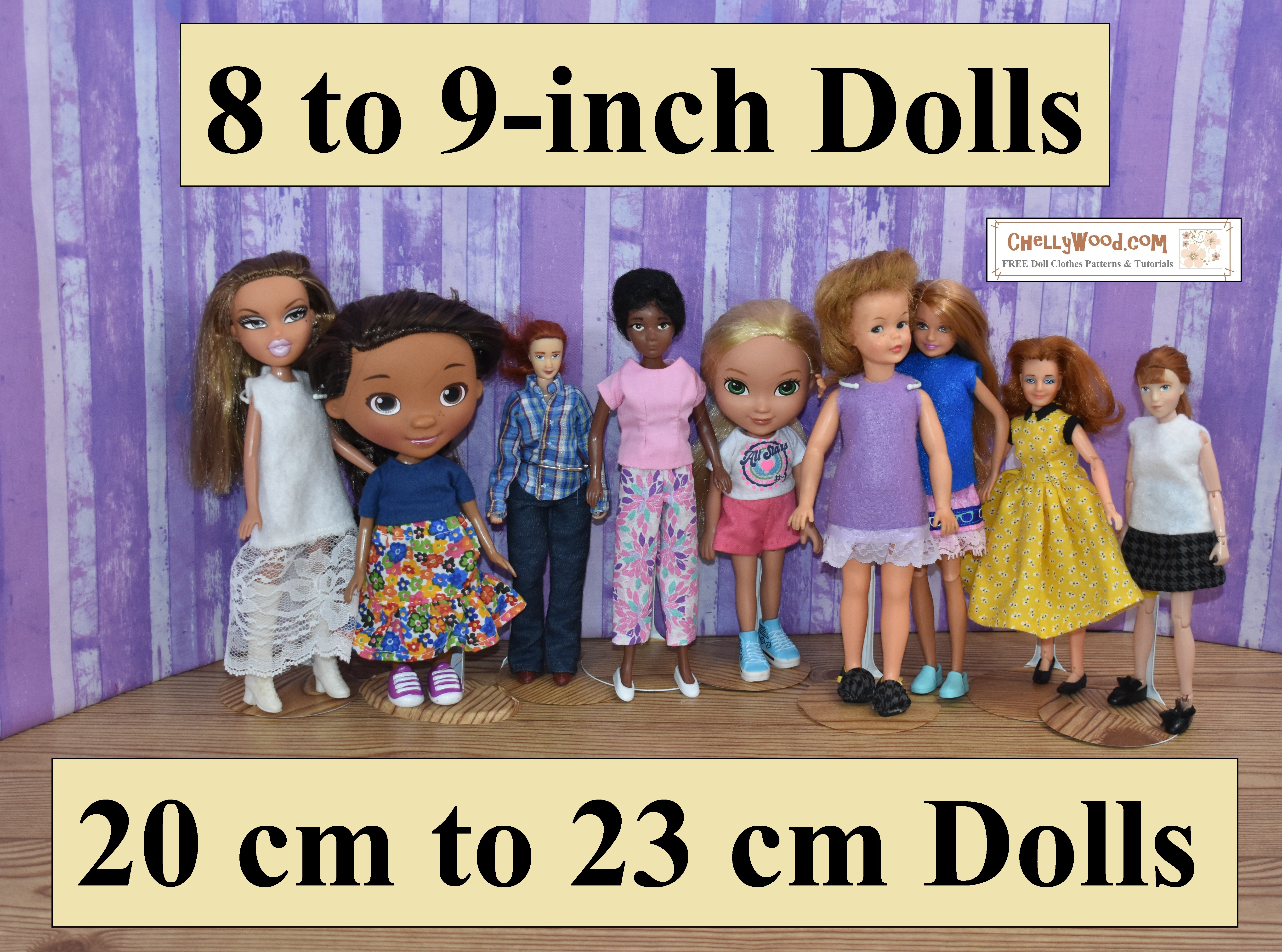 What size doll are you sewing for? Click on the doll’s height to find your free patterns. (Scroll DOWN.)