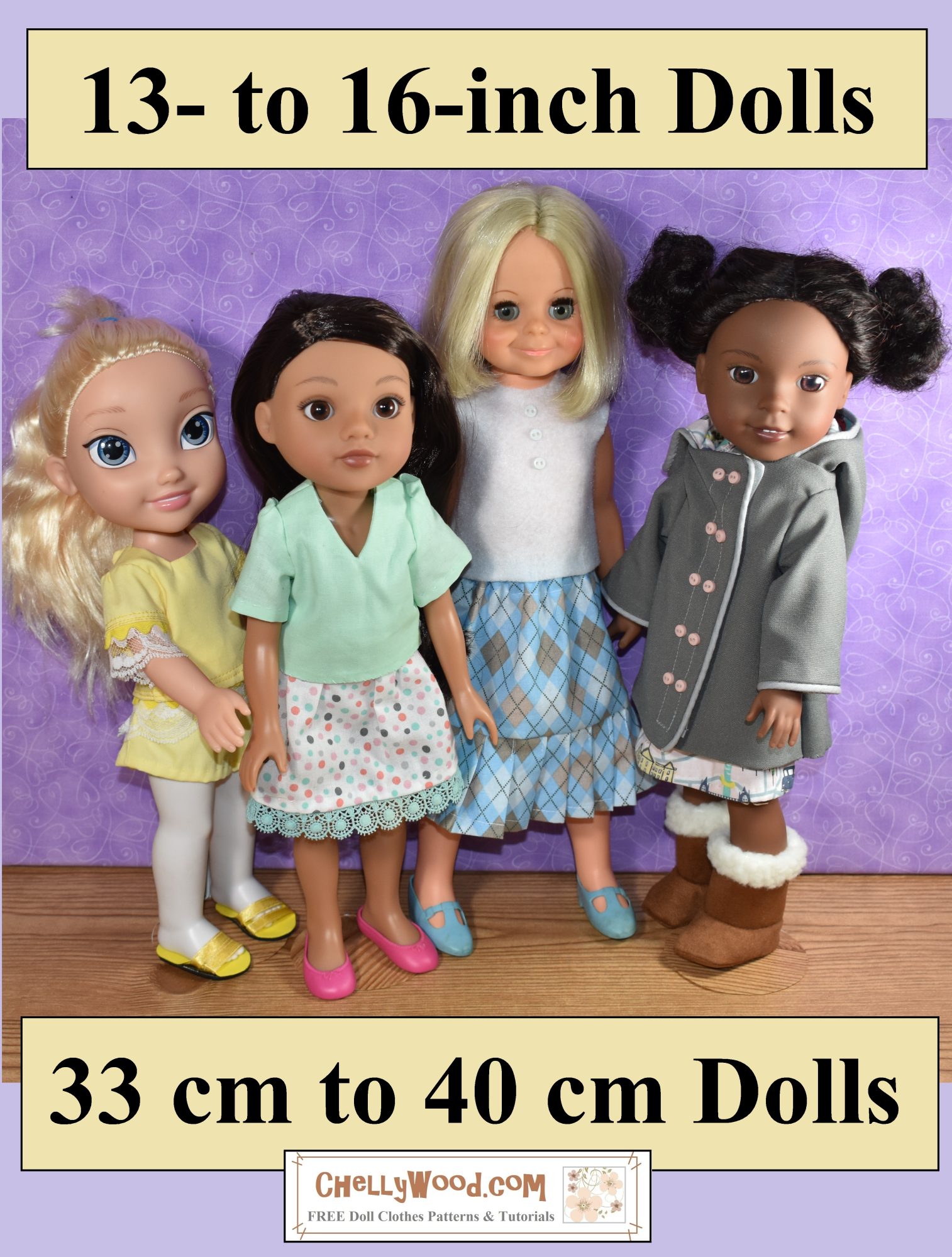 (Some of the doll clothes pictured in the image above may only be listed under one or two of the dolls in this size range, but my patterns sometimes fit all the dolls in this category.)
