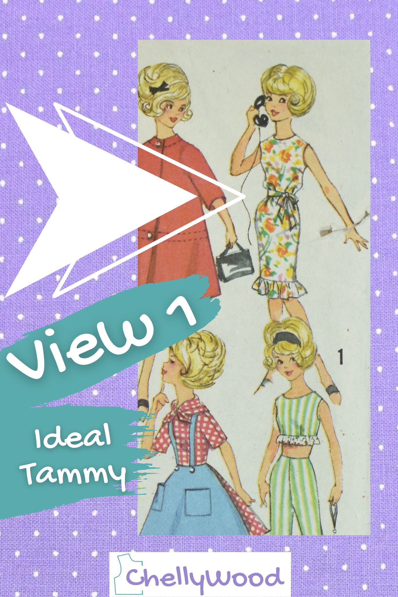 Recently I made a denim version of the View 1 dress from my Simplicity 4883 sewing pattern for vintage Ideal Tammy dolls. I used a lightweight denim fabric that had a soft pastel floral print pattern on it, but there was a very SMALL amount of this fabric available.