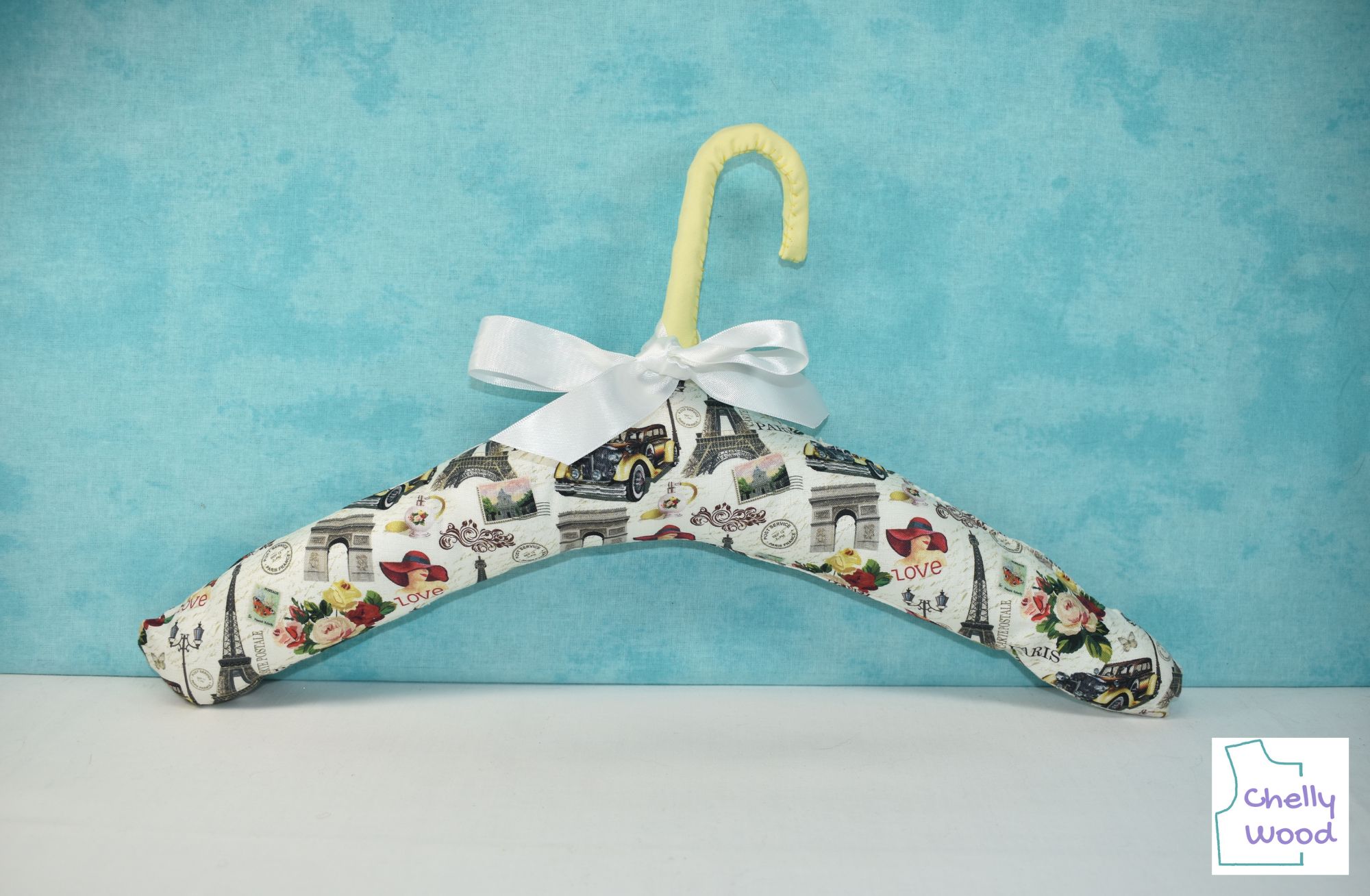There’s no pattern for today’s craft project, and it’s not a doll-sized hanger this time, just a regular hanger for you to put your clothes on, in your own closet.