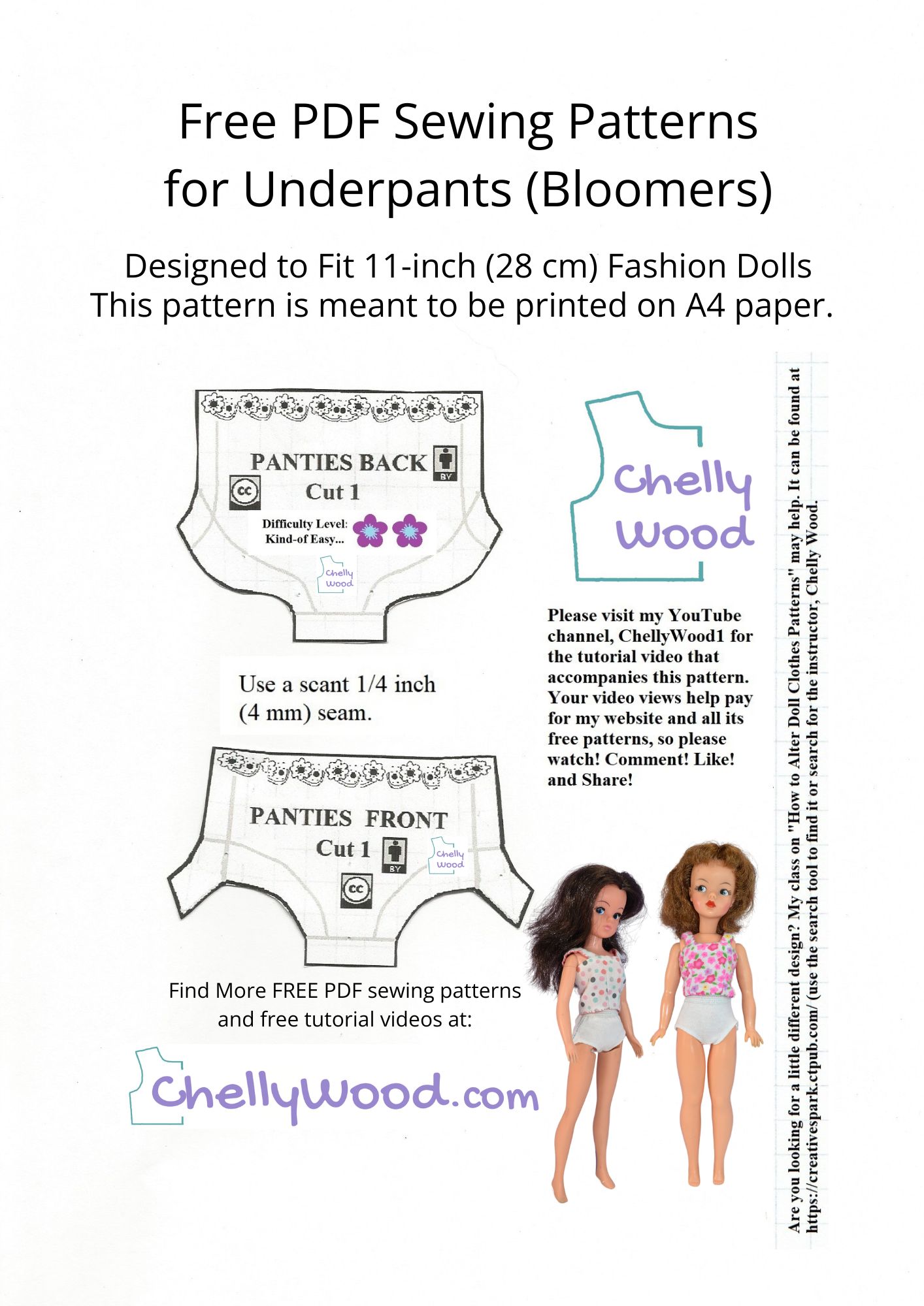 - Free printable PDF sewing pattern for Sindy or Tammy knickers (underpants) — Letter paper (American printer paper)