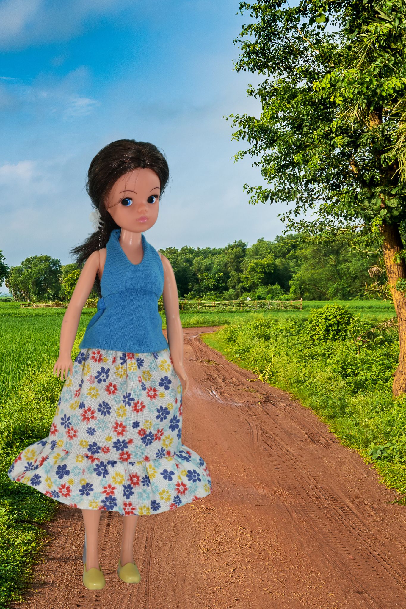 - Free printable PDF sewing pattern for a fashion doll’s skirt with a ruffle and halter top for A4 paper (commonly used in the UK and many additional countries outside the US)