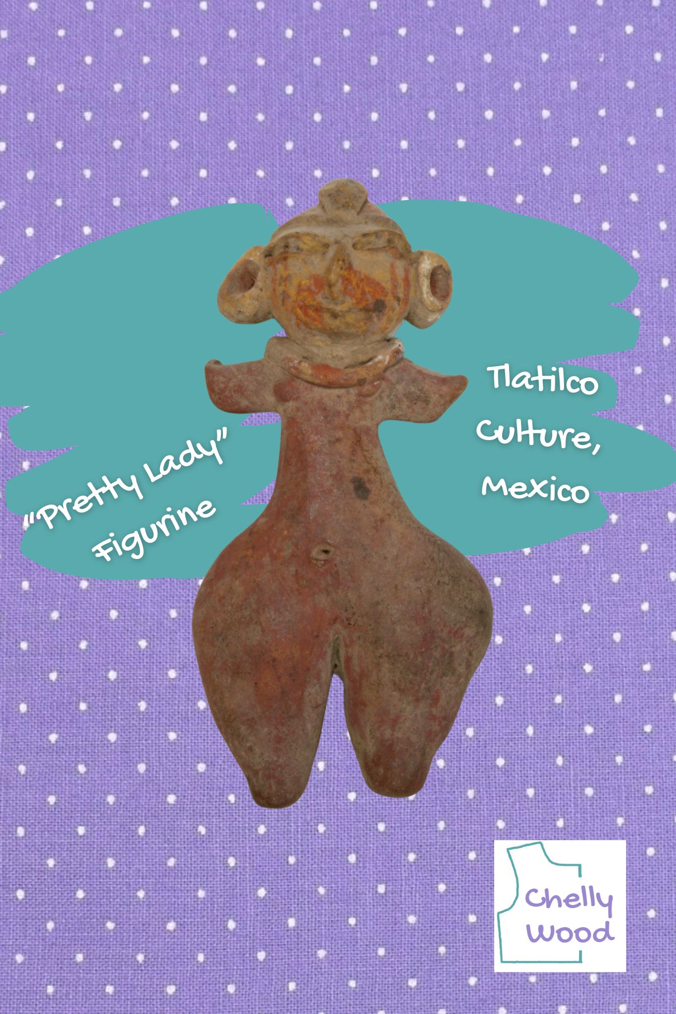 Personally, I believe little Mesoamerican girls probably learned how to sew by using these “Pretty Ladies” as dolls they could dress. They might have even glued, wrapped, or strung cloth arms and legs onto the figures. Or grass arms and legs.