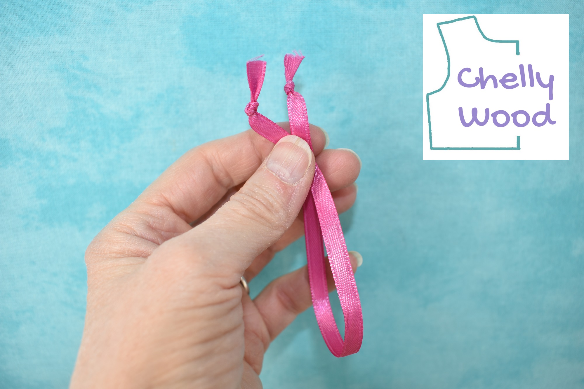 With ribbons, to prevent fraying, you can just tie a knot at the end. It will suffice if you don’t have any Fray Check, but over time, those tips of the pink ribbon below will definitely continue to fray.
