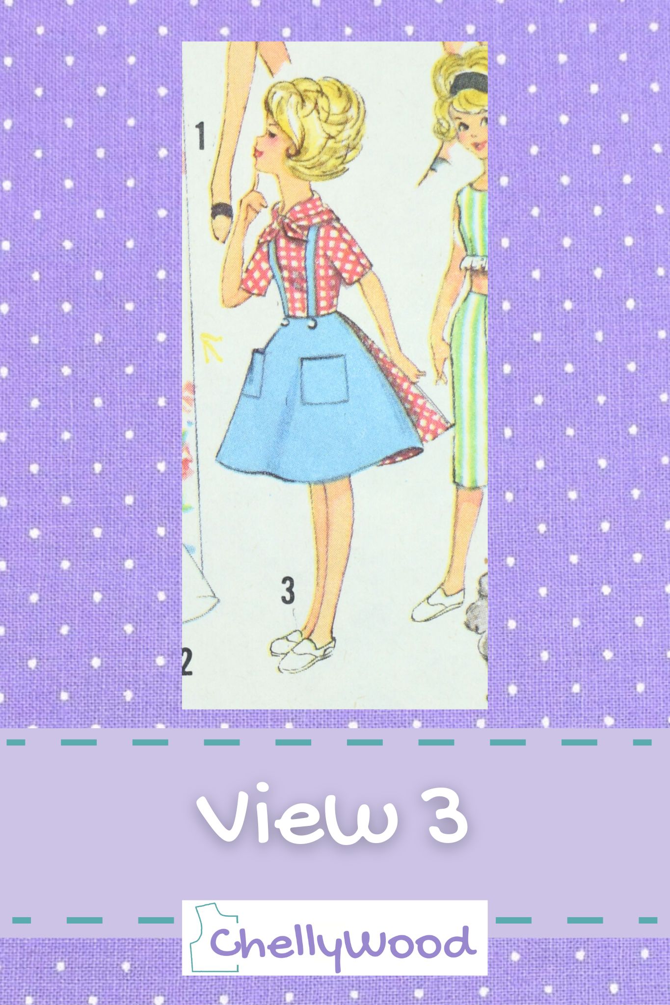 Another wrap skirt pattern that actually comes with instructions to make it reversible is the vintage Simplicity 4883 doll clothes pattern‘s View 3 skirt for Ideal Tammy.