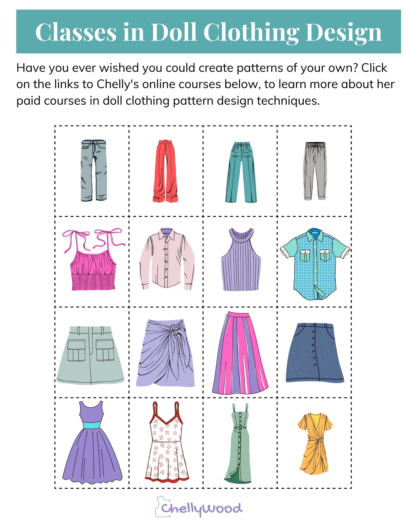 Is this pattern close to what you were looking for, but maybe you’re wishing the pattern was slightly different? If so, my Creative Spark class, “How to Alter Doll Clothes Patterns” may be just what you need to make these patterns into the pattern you see in your imagination.
