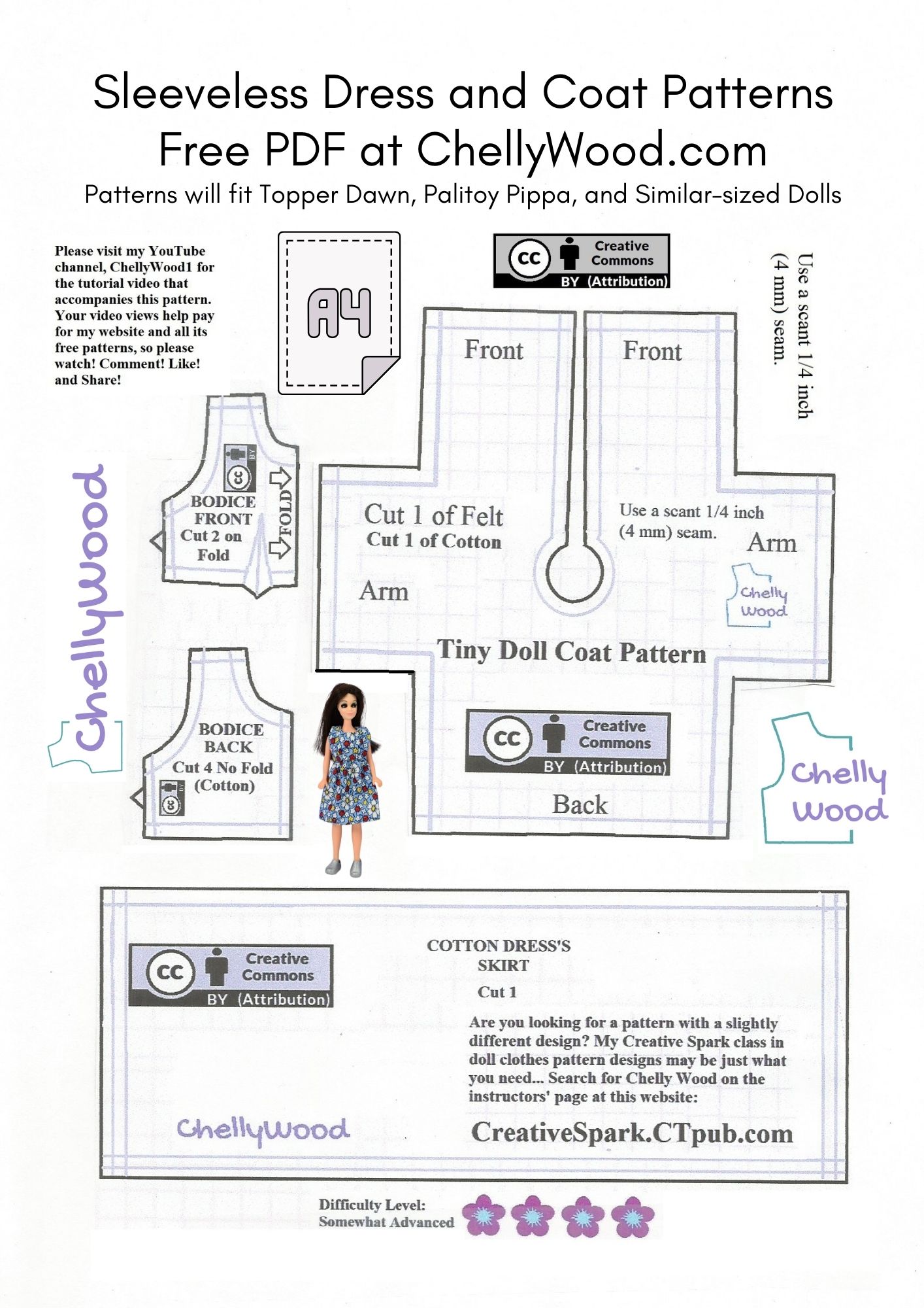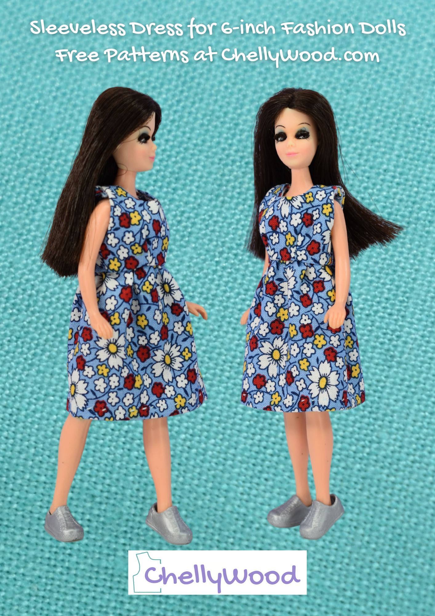 - Here the US version of today’s free PDF sewing pattern for making a dress to fit 6 inch dolls