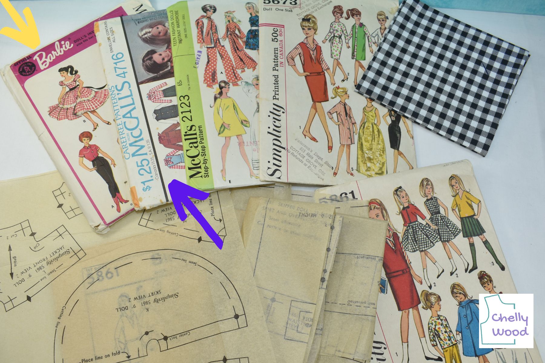 Most of the commercial patterns I display and talk about here on ChellyWood.com are also available for sale on eBay. However, if you’ve never purchased a pattern on eBay before, it’s a good idea to read the article I wrote called, “Tips for Buying Used Doll Clothes Patterns on eBay.” It will save you time, money, and will likely prevent buyer’s remorse.