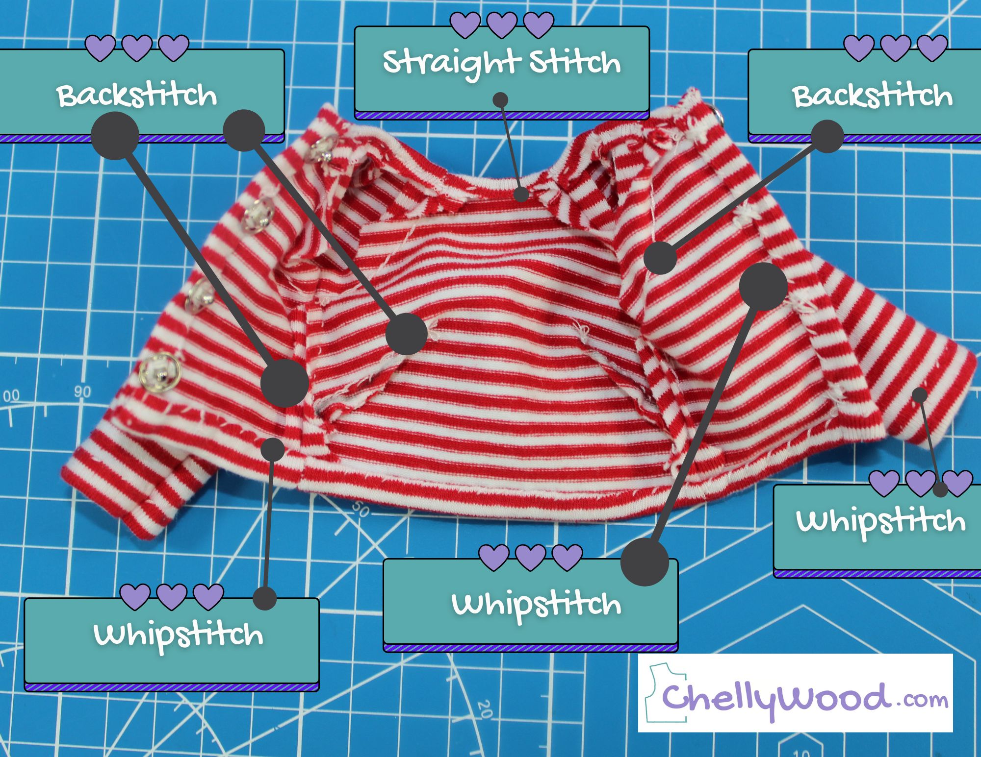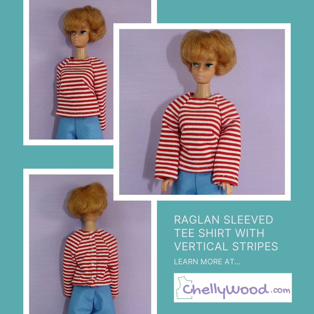 To really get a feel for this step-by-step process, have a look at the video below, which shows how to sew one of the raglan sleeved shirts that I’ve designed for a modern Skipper or Disney Princess 10 inch doll. The free pattern for making this shirt can be found at this link.
