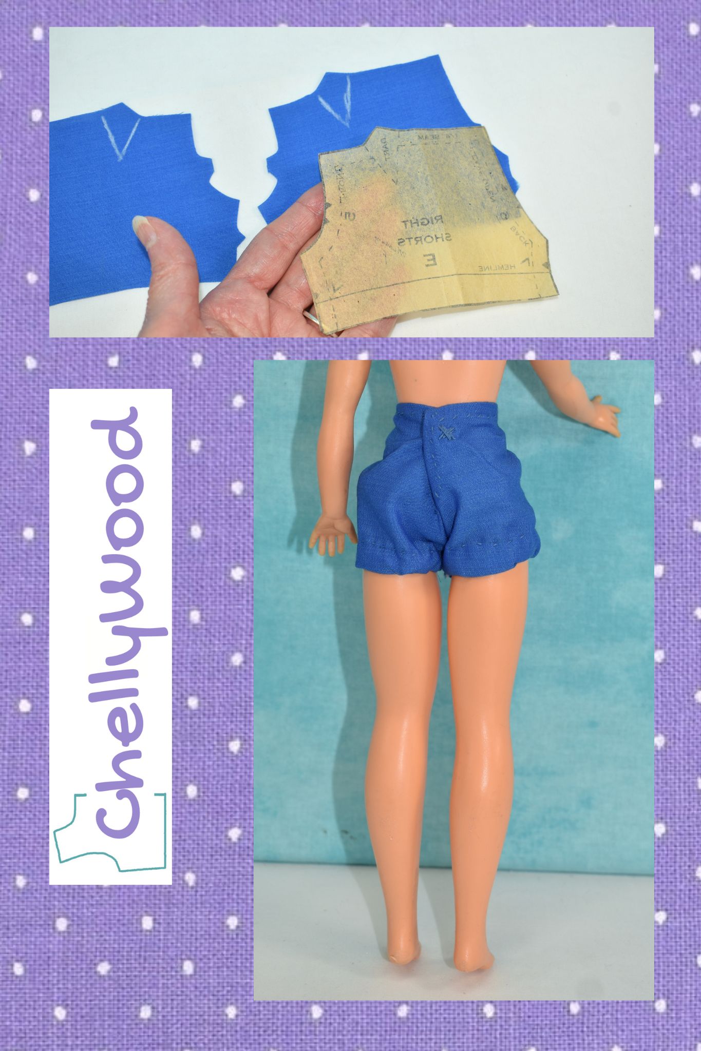 The images above show the bloomers from the Advance 9939 vintage Barbie doll clothes sewing pattern, and the shirt that Jem is modeling with these bloomers is the ice skater’s skirt from Advance 9939‘s View 4 doll clothes outfit.