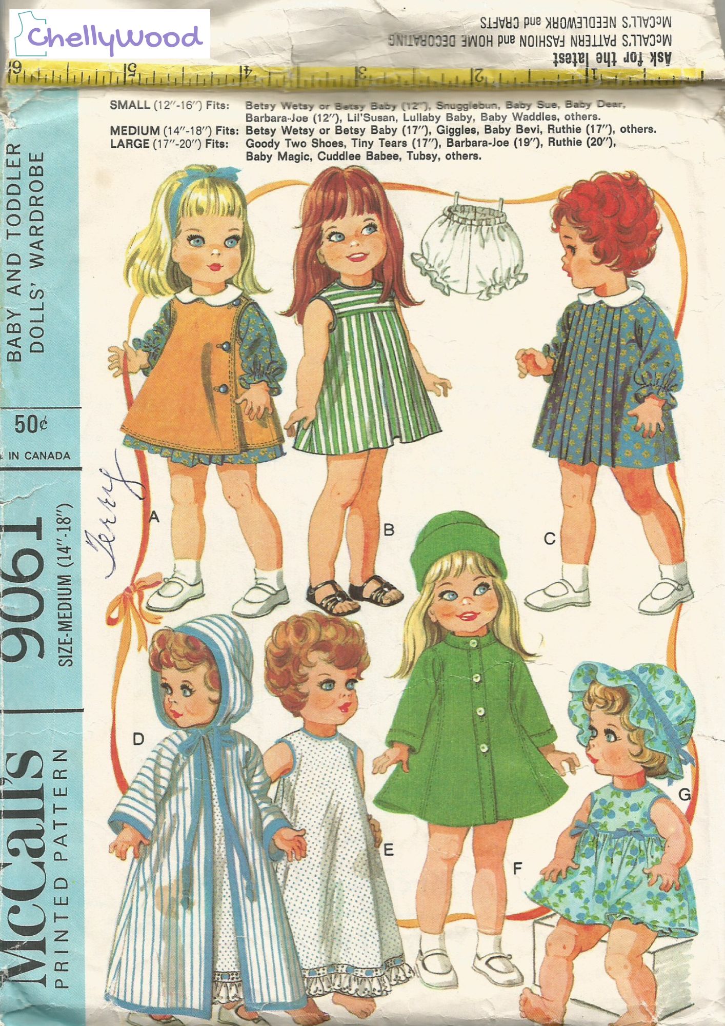 Most of the commercial patterns I display and talk about here on ChellyWood.com are also available for sale on eBay. However, if you’ve never purchased a pattern on eBay before, it’s a good idea to read the article I wrote called, “Tips for Buying Used Doll Clothes Patterns on eBay.” It will save you time, money, and will likely prevent buyer’s remorse.