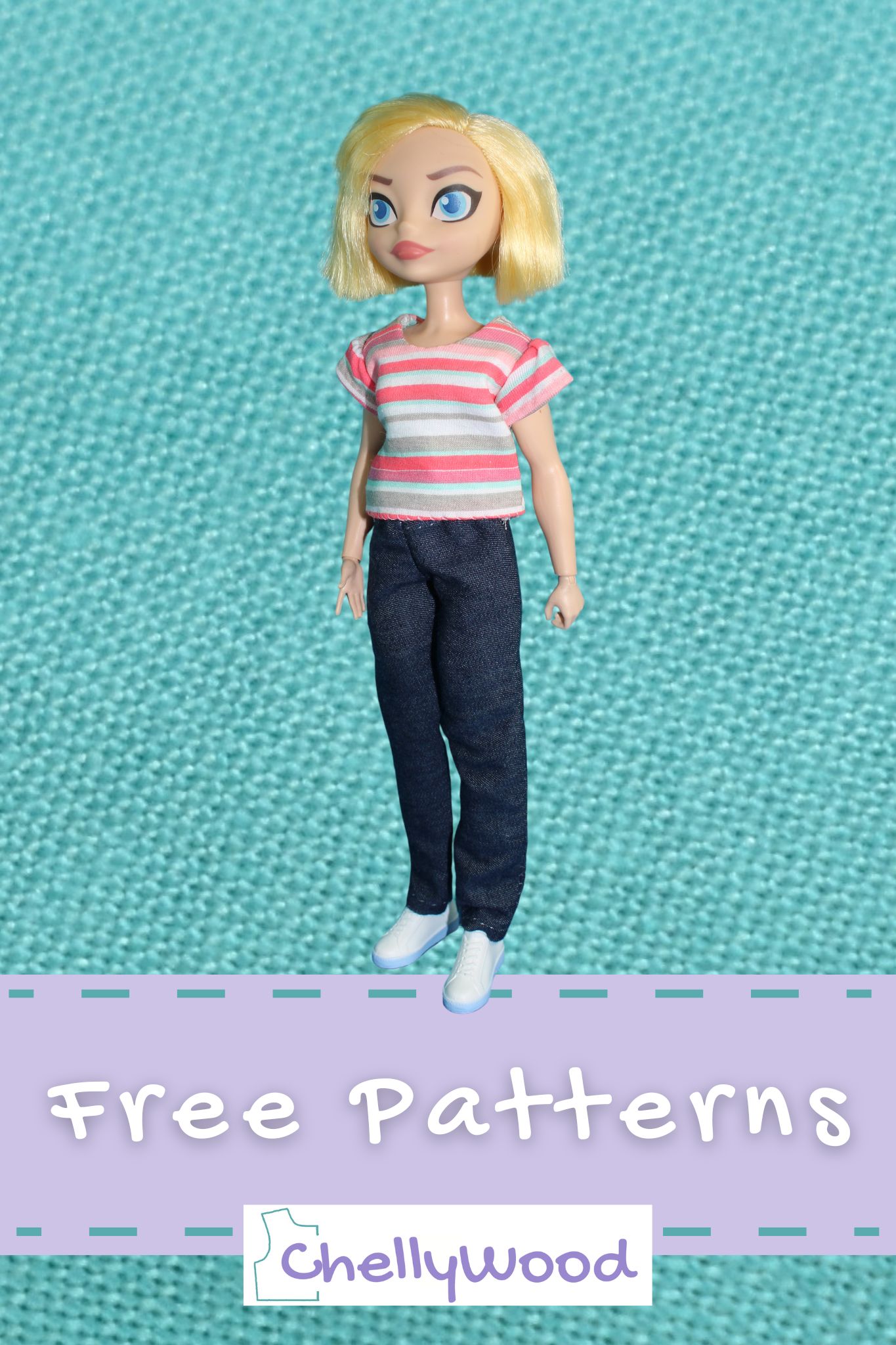 I first posted these patterns for the Creatable World dolls from Mattel. But they also fit modern Skipper, vintage Skipper (from the late 1980’s and early 1990’s) and I just discovered that they’ll fit my DC Superhero Super Girl doll.