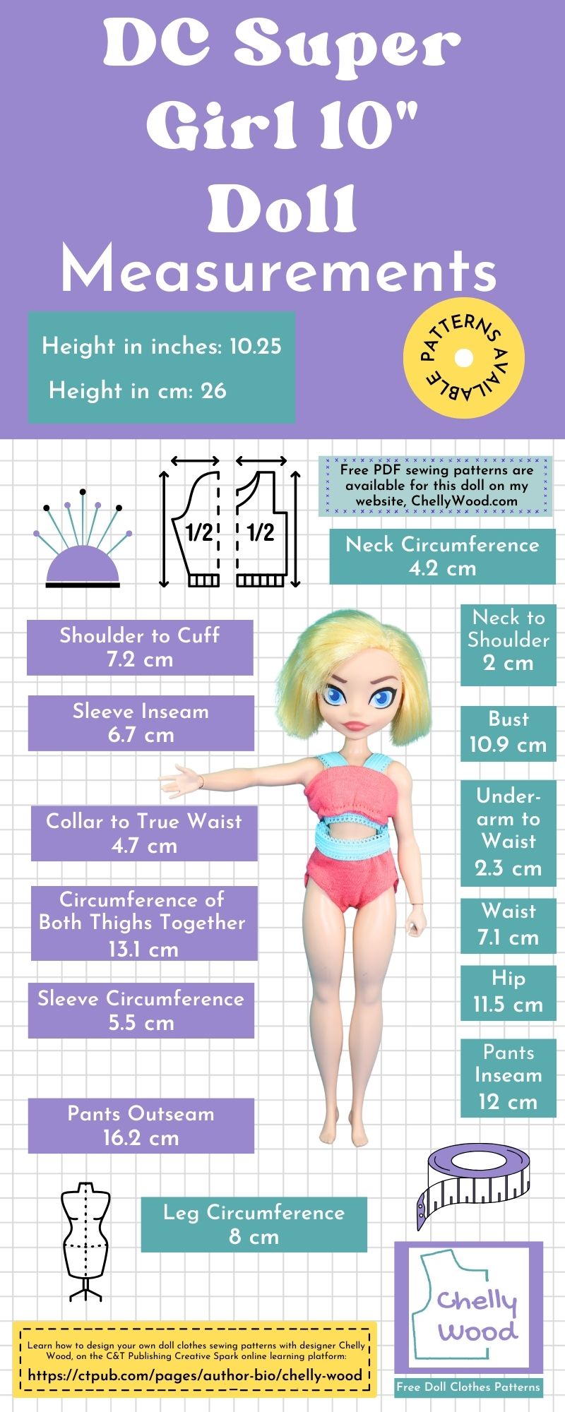 I actually include an extensive explanation about how to measure your dolls in my “How to Alter Doll Clothes Patterns” course on the C&T Publishing learning platform. This class will teach you how to alter pants, skirts, dresses, and shirts too. If you haven’t looked into it yet, you can click here to learn more.