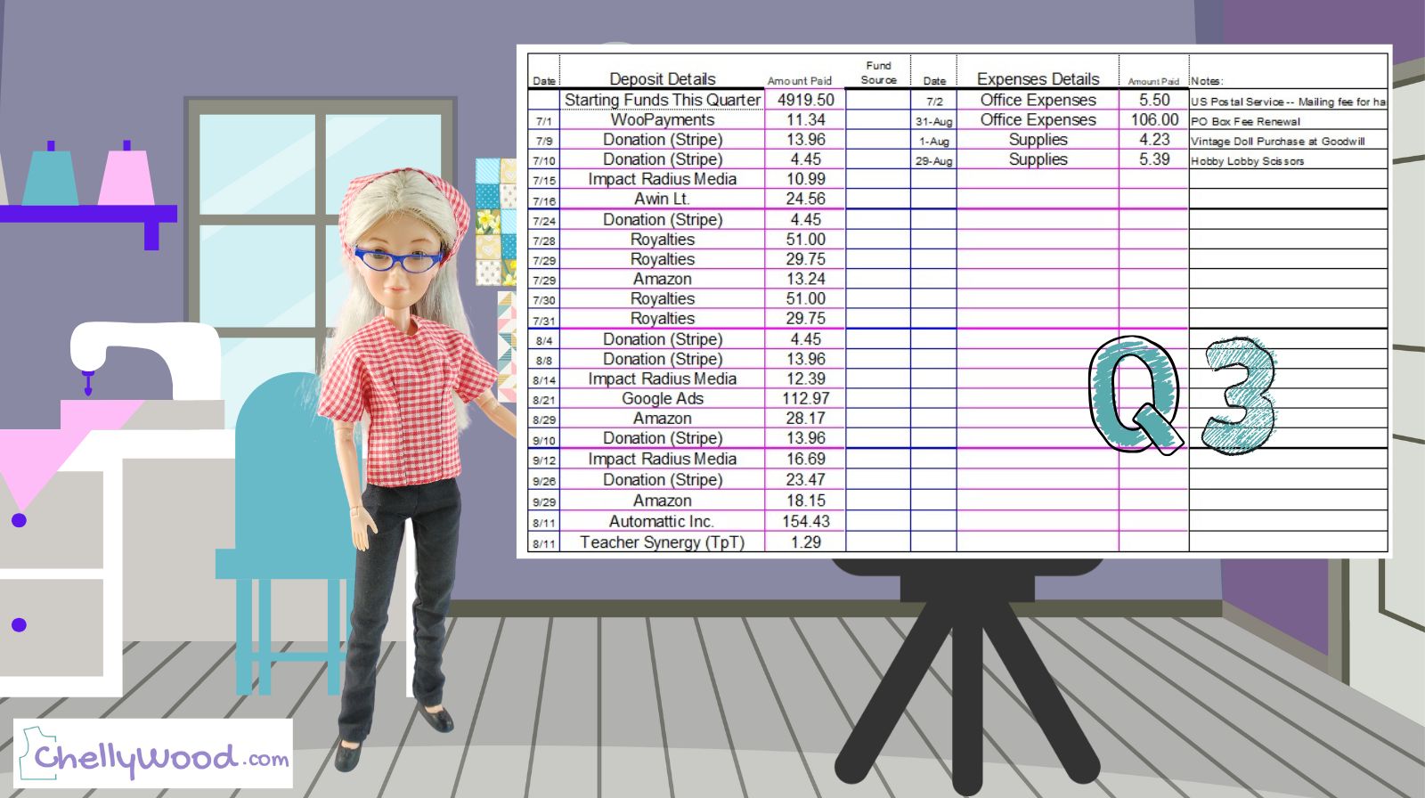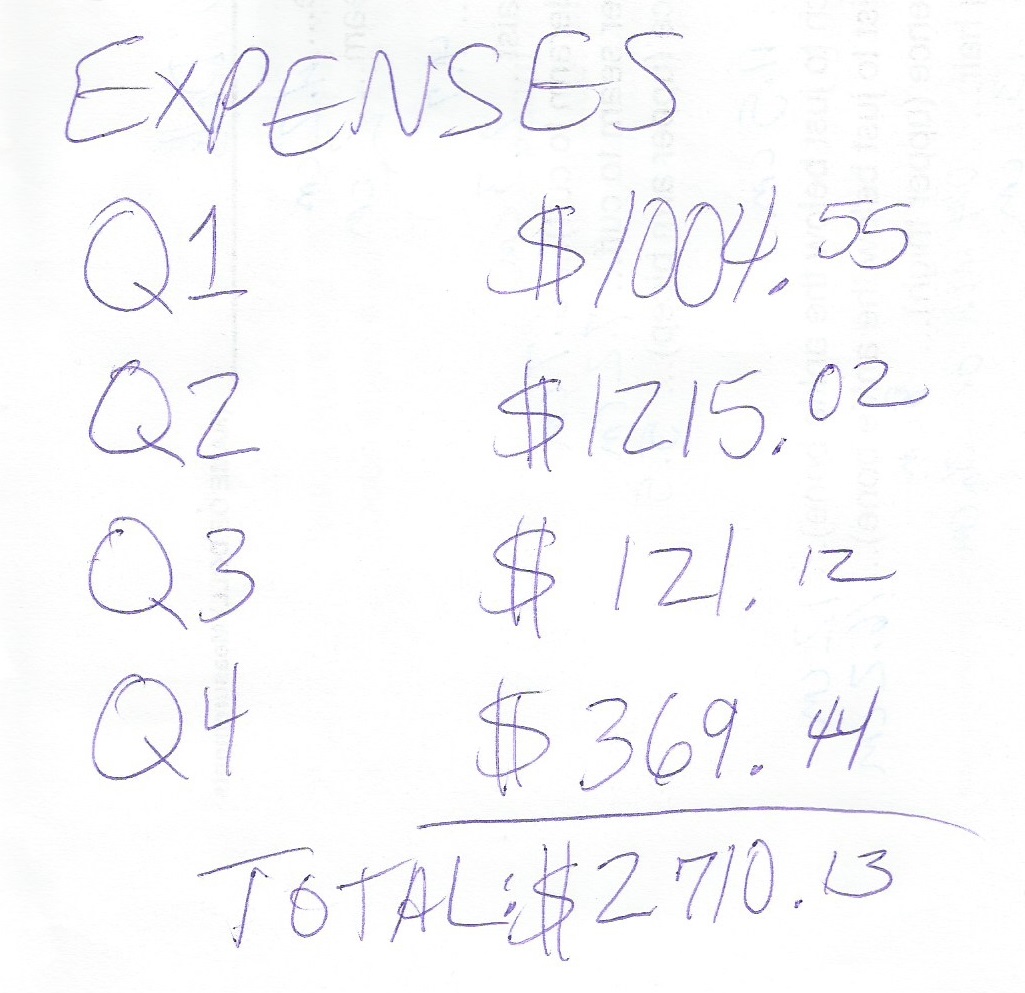 My biggest expense in Quarter 3 was the cost of my post office box. My YouTube channel now boasts 16,000 followers, and when you’re that popular on YouTube, it’s a good idea to keep a post office box.