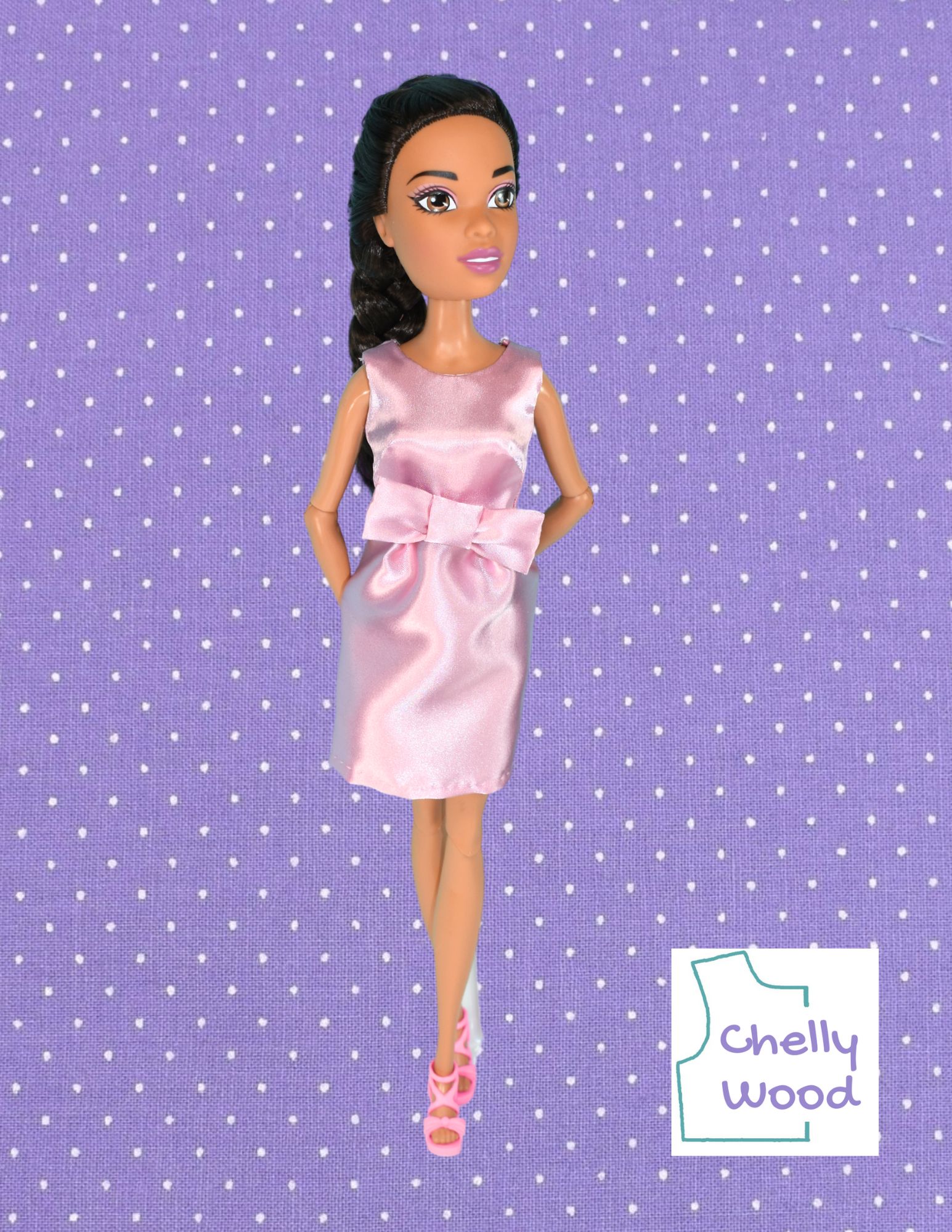 I’ve also designed dresses that just use a bow as a decorative element, like you see on the doll below.