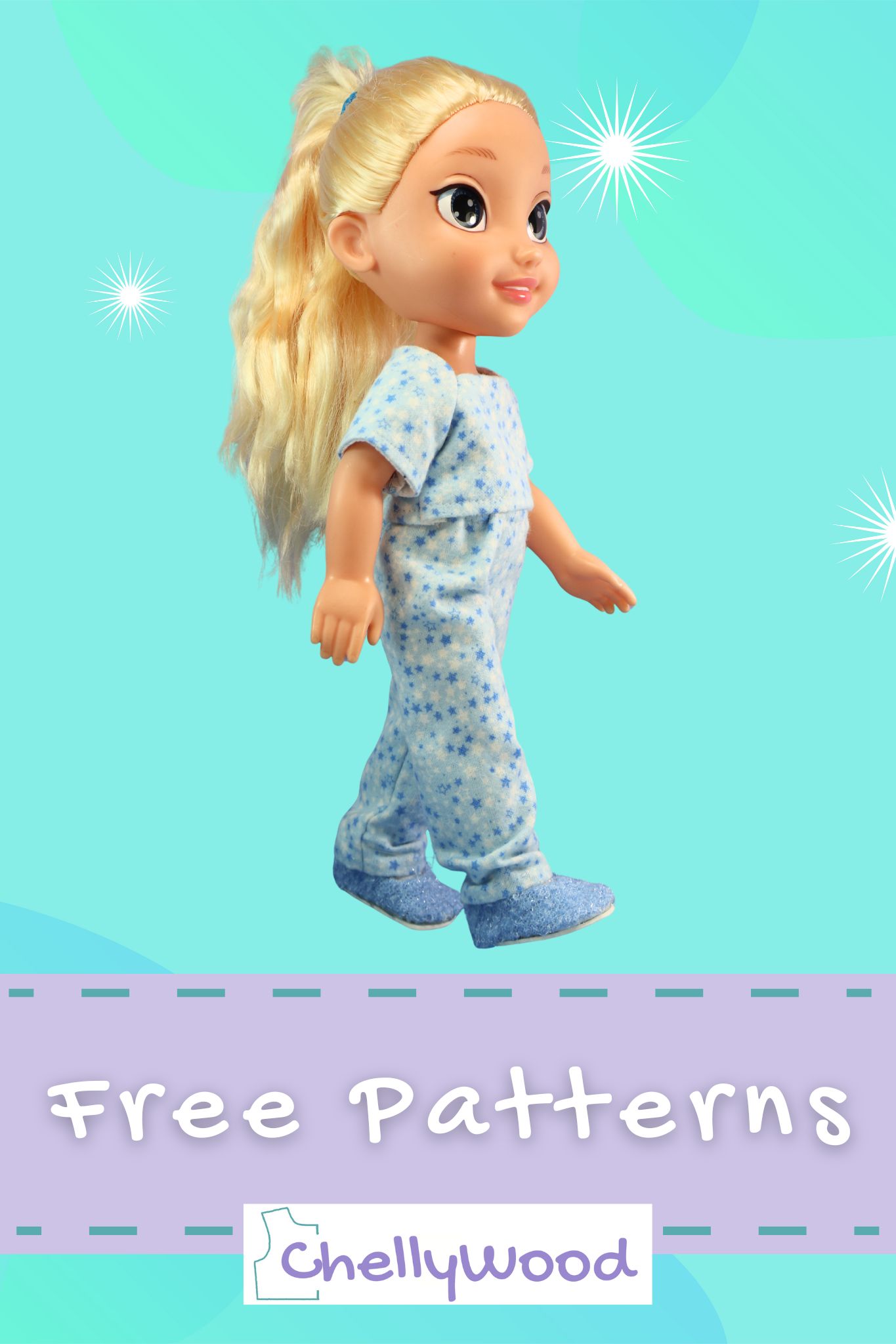 - Free A4 (international) PDF sewing pattern for making pajamas and slippers for a 13 to 16 inch little girl doll