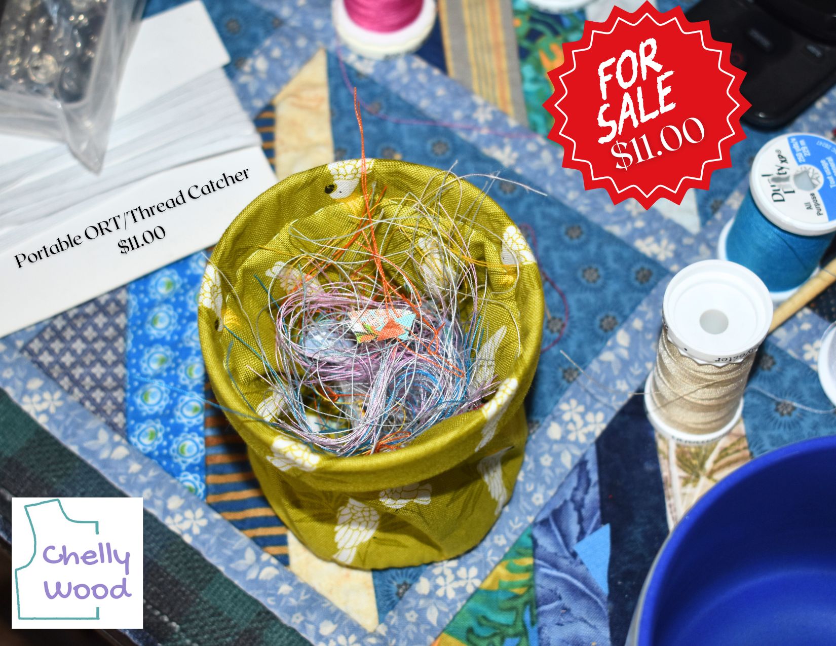 My mother-in-law and I came to the decision to ask $11.00 for this collapsible/portable thread-catcher based on the typical fees for them on Etsy (their prices are slightly higher, on average, if you include shipping charges).